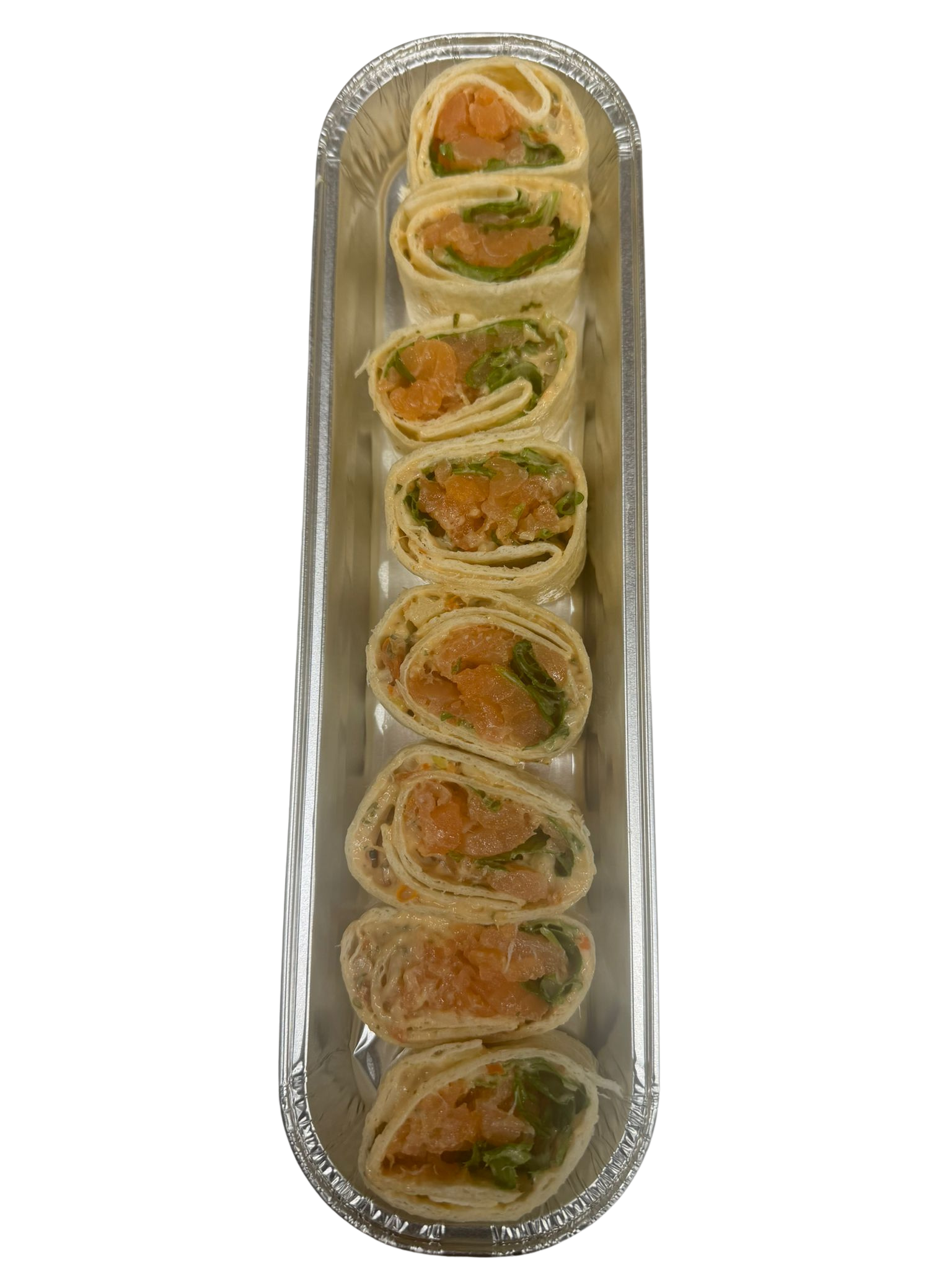 De 'Smikkelpot': De wraps zijn rijkelijk gevuld met onze unieke 'Smikkelpot' – een romige, hartige spread die de zalm perfect complementeert. Dit is het geheime ingrediënt voor de onweerstaanbare smaak.